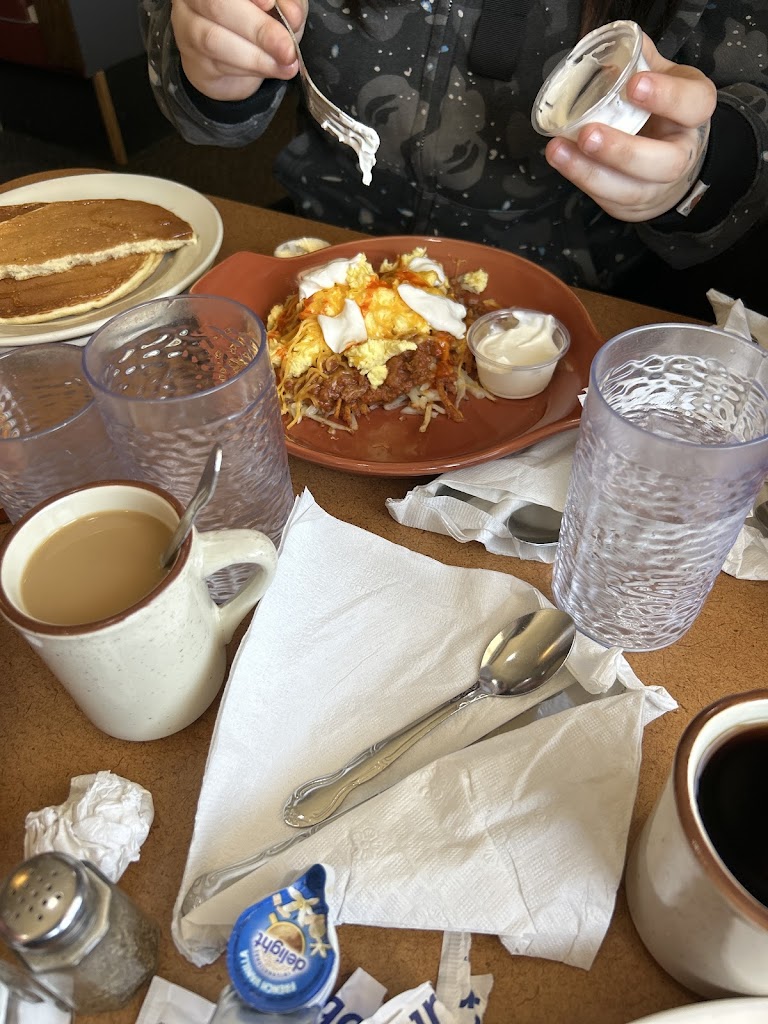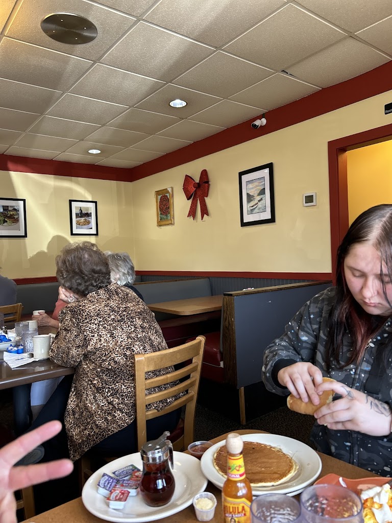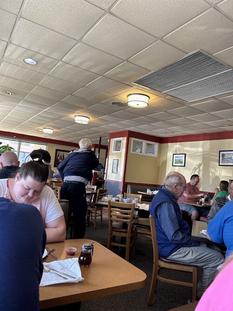 Very outdated - way too busy- sat us in the corner where no one could move and the waitress had to use someone else’s table to hold up the plate to serve us food the couple sitting there ended up moving because they used their table so many times it was just inconvenient - no chocolate milk? Come on your a breakfast joint do kids not want chocolate milk?