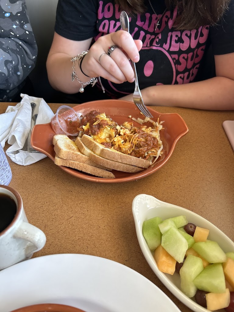 Lily was our waitress and she was so friendly and recommended her lily pancakes with the cinnamon and sugar and chocolate chips it's not currently on the menu but very good and if you say something about it they will make it for you. I had breakfast scrambler it was so good and I definitely recommend this play for breakfast lunch or dinner.