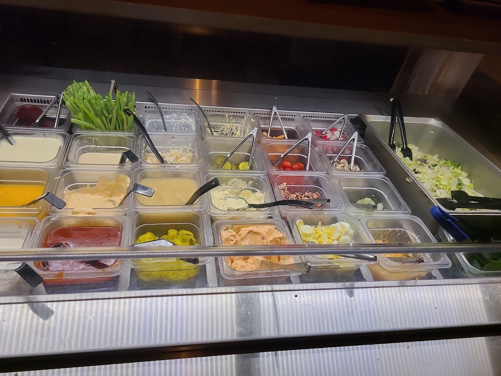 The salad bar was good, standard items. Service was as it should be. There was just no "wow" factor. High tables were not comfortable to sit at.