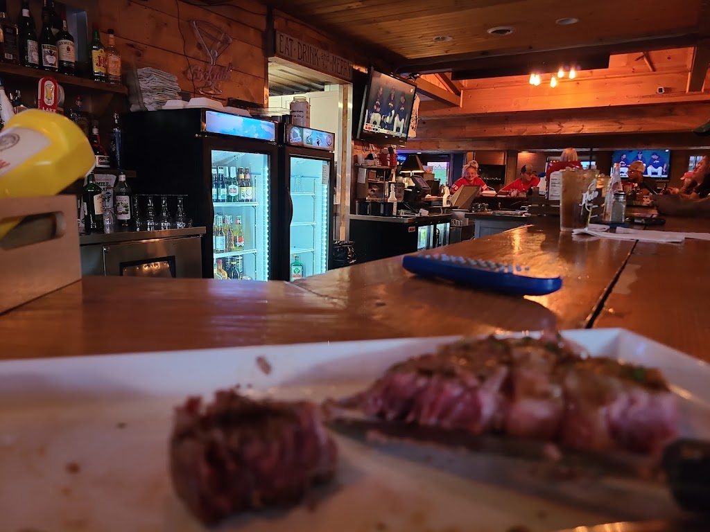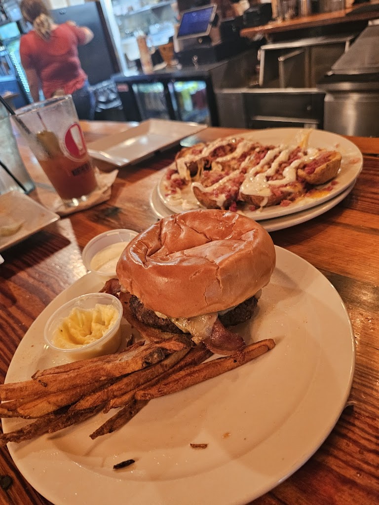 Went here for lunch and had the bacon cheeseburger. It was delicious and a healthy 1/2 lb portion. Also went for drinks after work and had a good time. Bartenders were attentive and the atmosphere was bright with a log cabin type theme. This is very much a local hangout so everyone finds someone to strike up a conversation with.