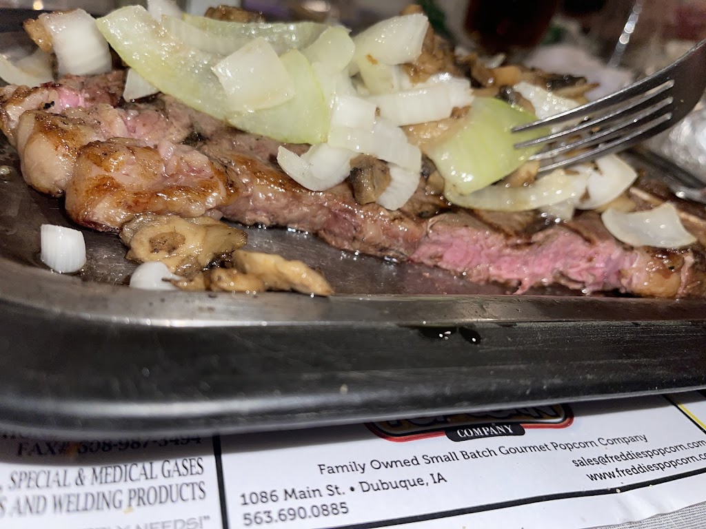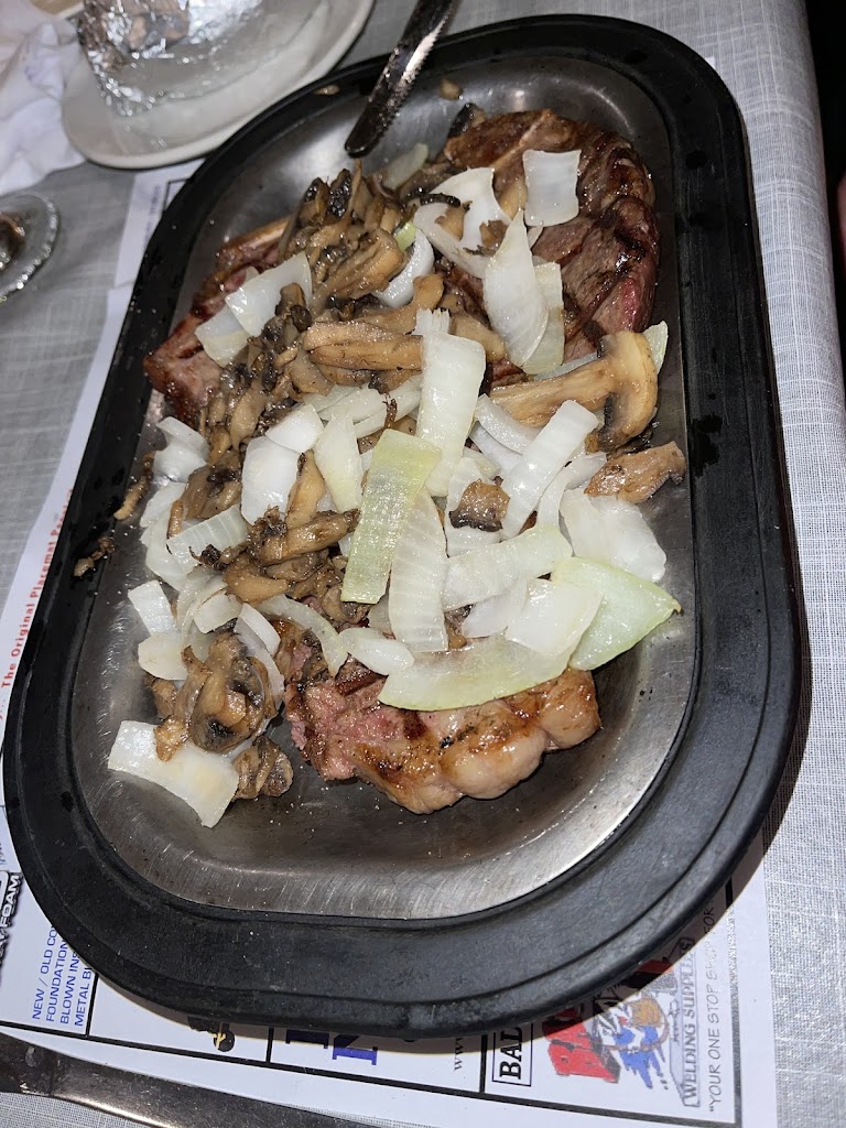 We came for the legendary 24oz prime rib that only graces the menu on Fridays and Saturdays. Expectations? Sky high. What we got? An overcooked tragedy served with all the enthusiasm of a cold shoulder. Flavorless. Lukewarm. Chewier than my childhood trauma. And if you want onions and mushrooms on top? That’ll be $3 each for the privilege of some raw onion slices and what I’m 90% sure were canned mushrooms rinsed in Palmolive.