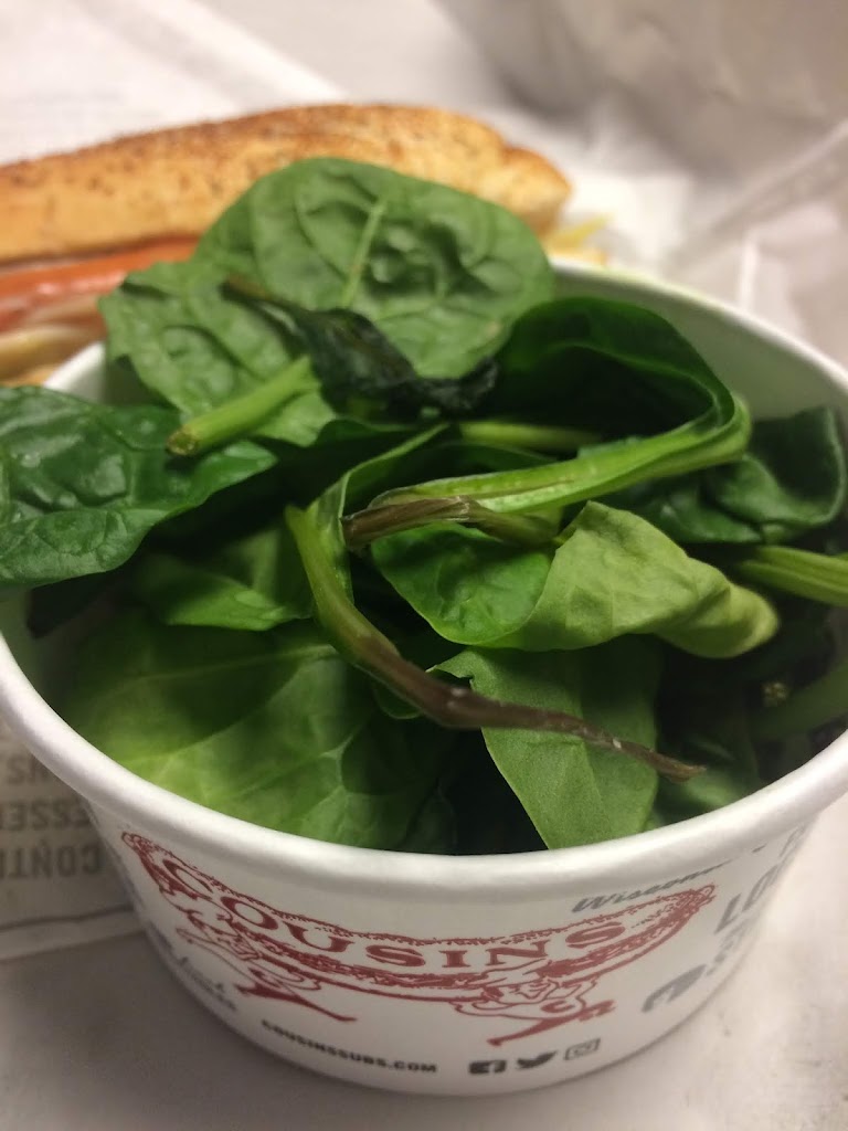 Food tasted like cousins sub, good. The spinach was rotten. They forgot my chips which was probably a blessing in disguise. haha They were kind and put the extras on the sub as I requested. Pictured is the ad for the sub and the actual. Could of used more cheese regardless I ordered extra just seemed to get lost so order triple cheese.