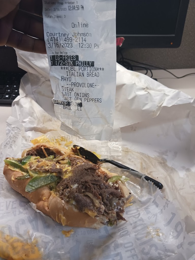 I work in a place where cousins could receive large orders for luncheons and special events. I have included the photo of what I received. I don't like American cheese ruined my taste for the order I paid $22.32 for a sandwich , soup and fries. Sandwich made my stomach ache and turned my taste buds off. I gave half to co worker and tossed the rest. I will not order again and will inform the building employees of my experience with this Cousins Subs who I see clearly is not providing good service or experiences and want you climb hell's mountain with wrongly made sandwich in tow a day old, to prove your complaint. Angrily
