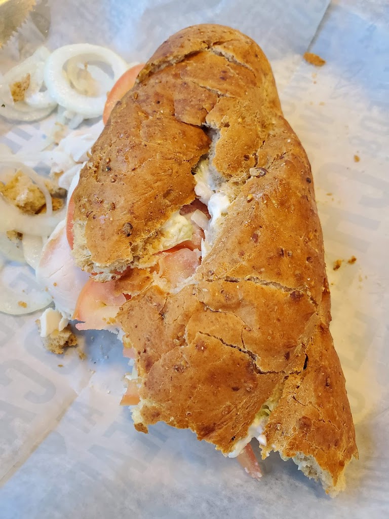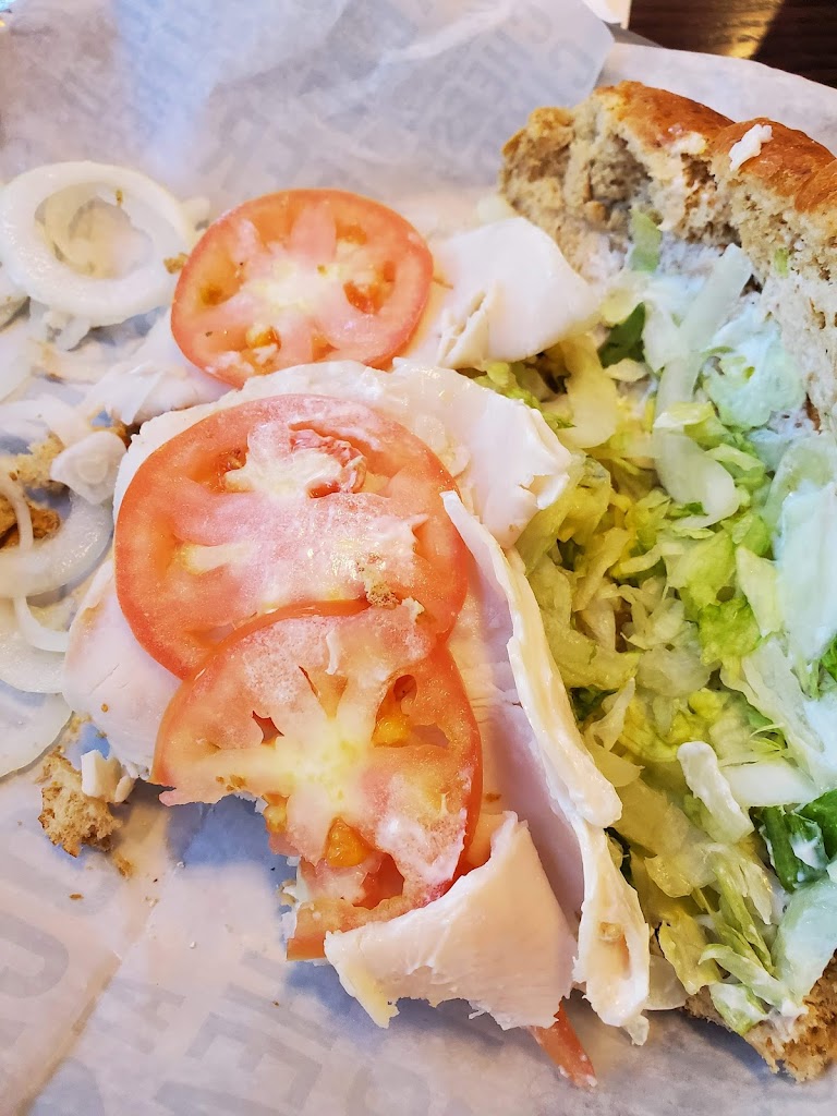 I got gum on my shoe, my moms sub fell apart was full of liquid, and i said bacon instead of ham still got ham we'll see if my brothers in okay. Glad we didnt tip.