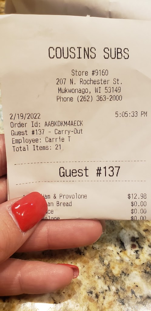 Today I ordered our subs around 12:25pm to be picked up at 4pm. They tasted like they were made when I ordered them at 12:25. Very disappointed with these sandwiches. And I used to like Cousins more then Subway. Maybe I'll have to try Subway in Mukwonago next time.