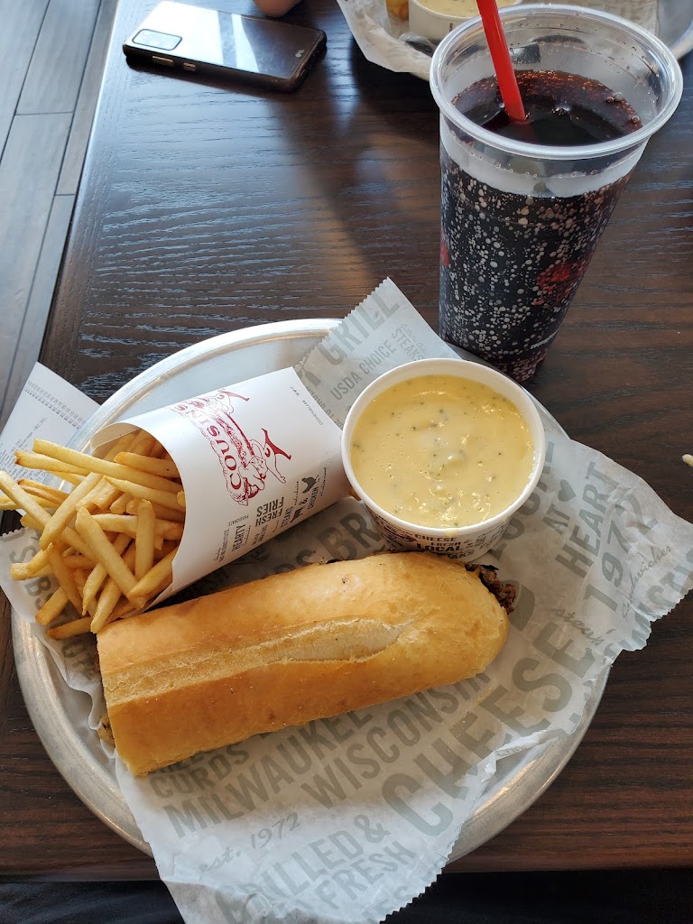 Tasteless Philly sandwich. Lot of bread, not much in the way of filling. Only reason for two stars is they have Sprecher root beer.
