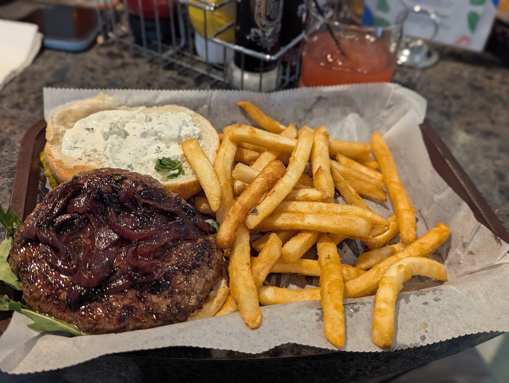 Great and attentive service. We had the Bluey Gooey Burger (Blue cheese, onion jam). Delicious. Great beer and specialty drinks