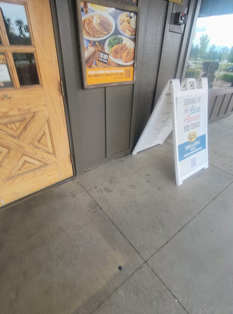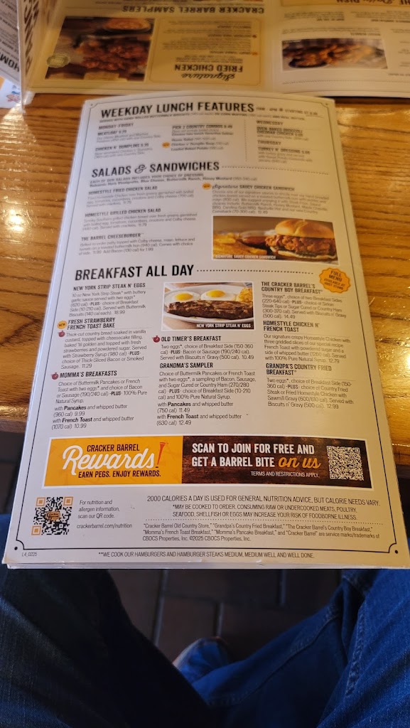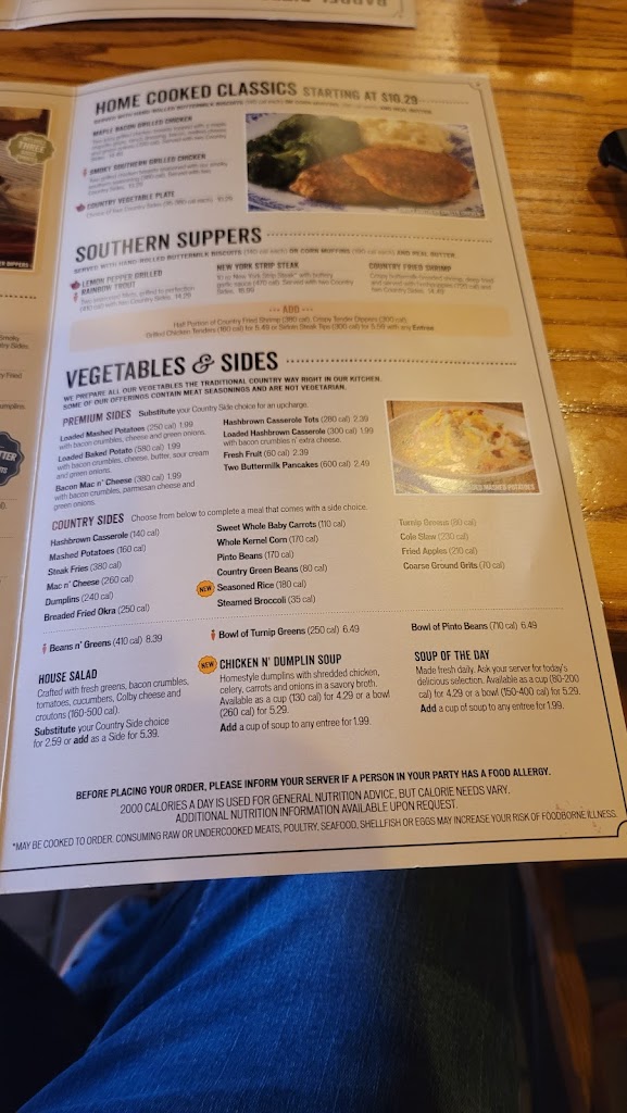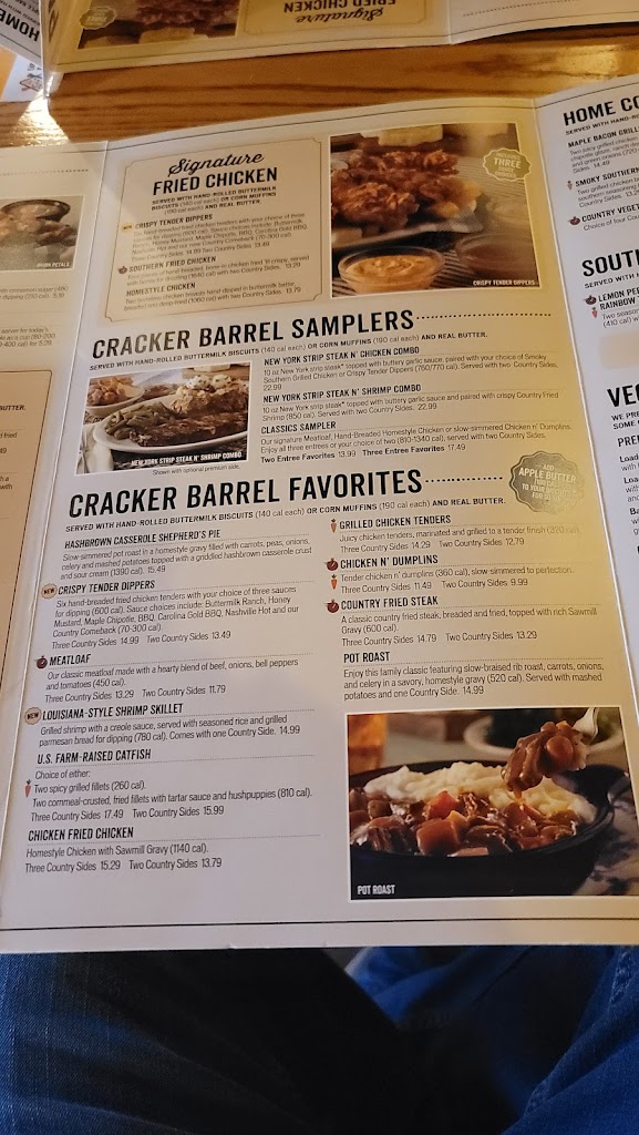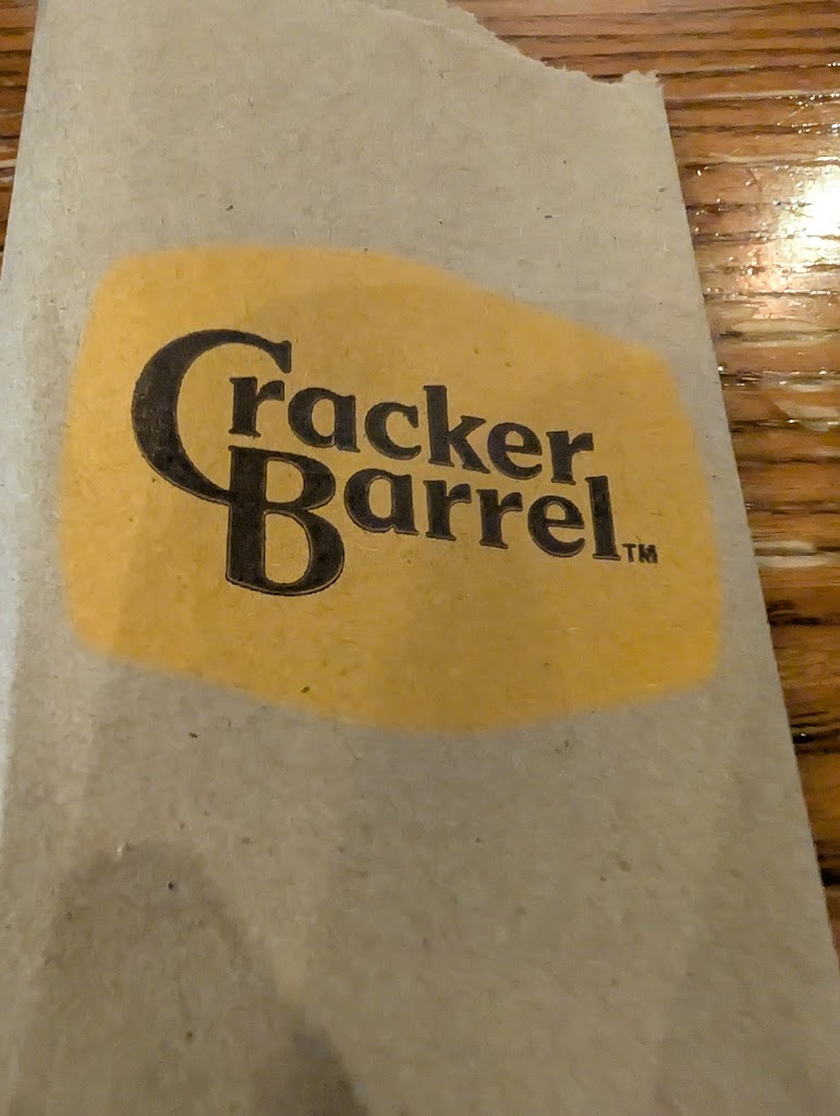 Cracker Barrel completely gone to pot; a shame. Pinto beans, carrots, other sides straight out of the can, not hot. Country fried steak was ground no-name “meat”. At 5:00pm, they had NO clean knives for service, a really bad sign of their cleanliness. Most employees lackadaisical, just passing time. I won’t be back.