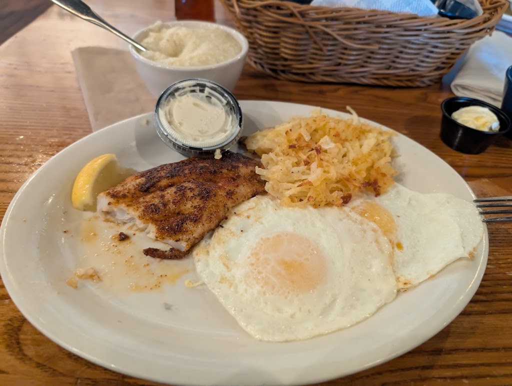 Food was cold , eggshells in scrambled eggs and grits was very watery ! Service was very good!