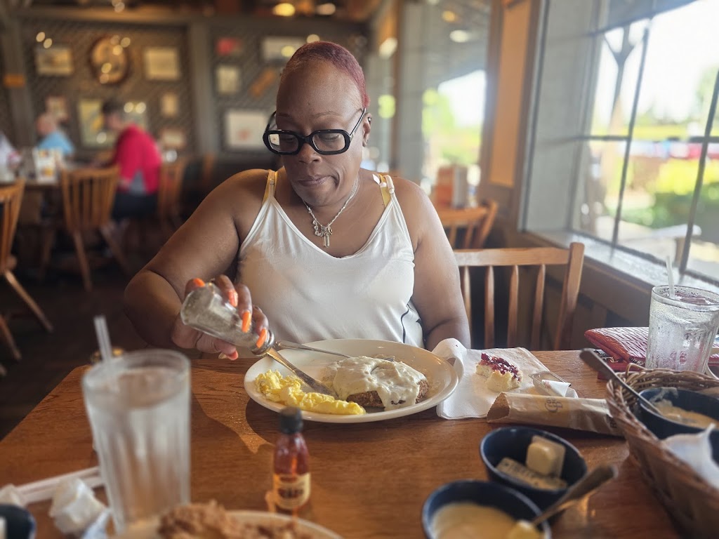 Service was really slow. If this was my first visit to a Cracker Barrel the cook would have ruined the 1st impression.