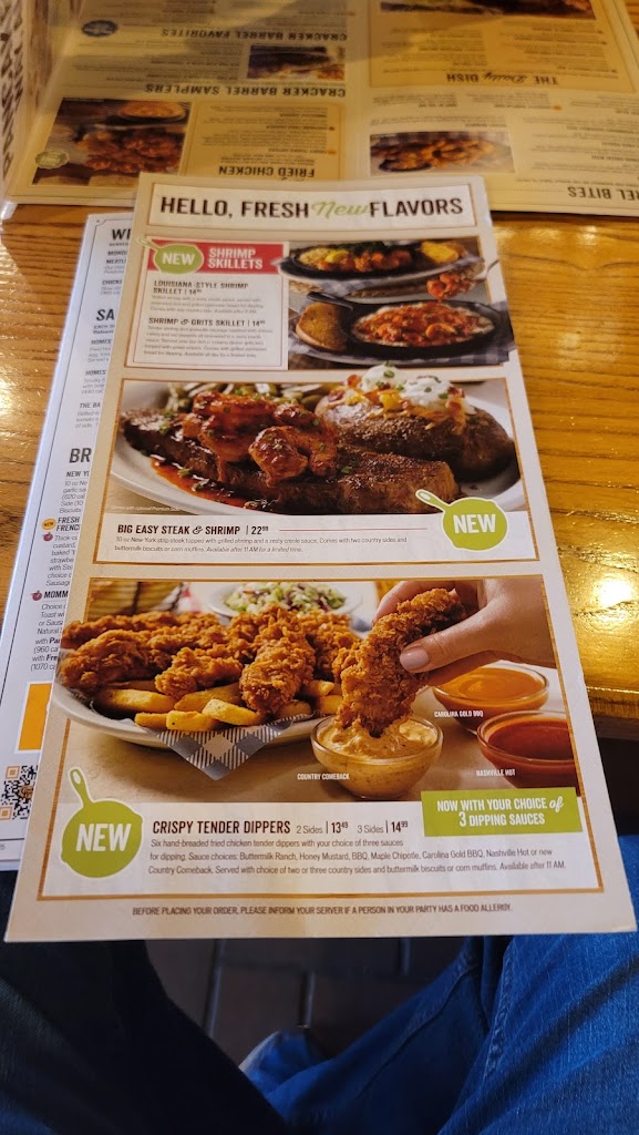 Pretty average Cracker Barrel. One of the hosts didn't really seem to be good at keeping track of who had what and where it all went, and another waitress kept trying to insert themselves into our conversations too much. Nothing terrible really, but could have been better. Certainly a fine enough location if you already like Cracker Barrel 😊