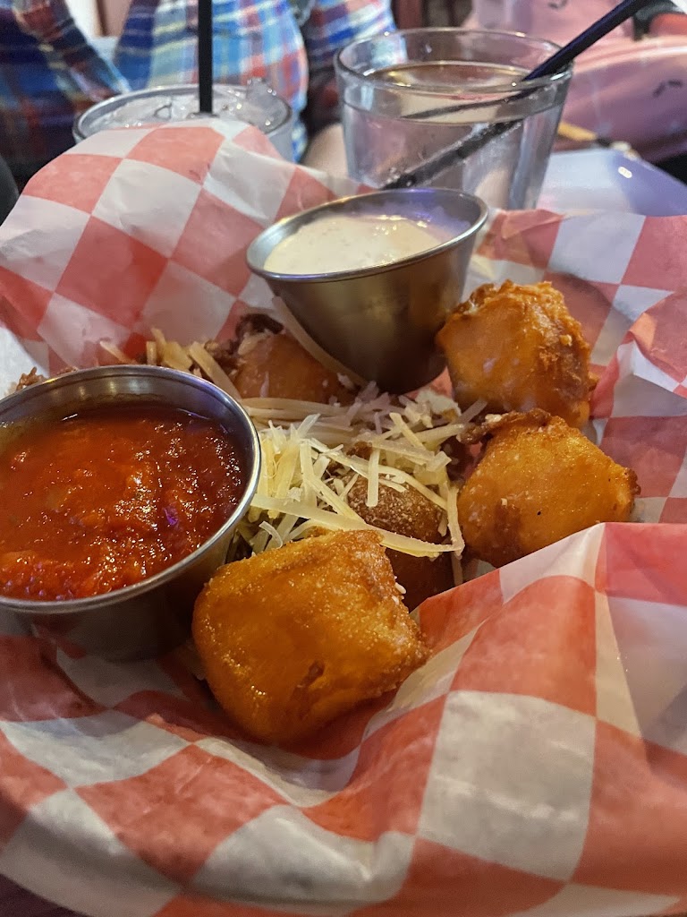 This little bar is located at the end of a local inn. The cheese curds were amazing and the staff was super accommodating. Desert was good but the food just wasn’t anything special.