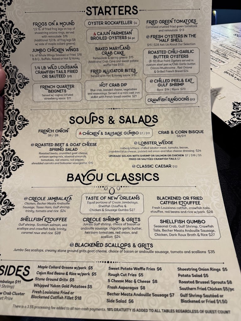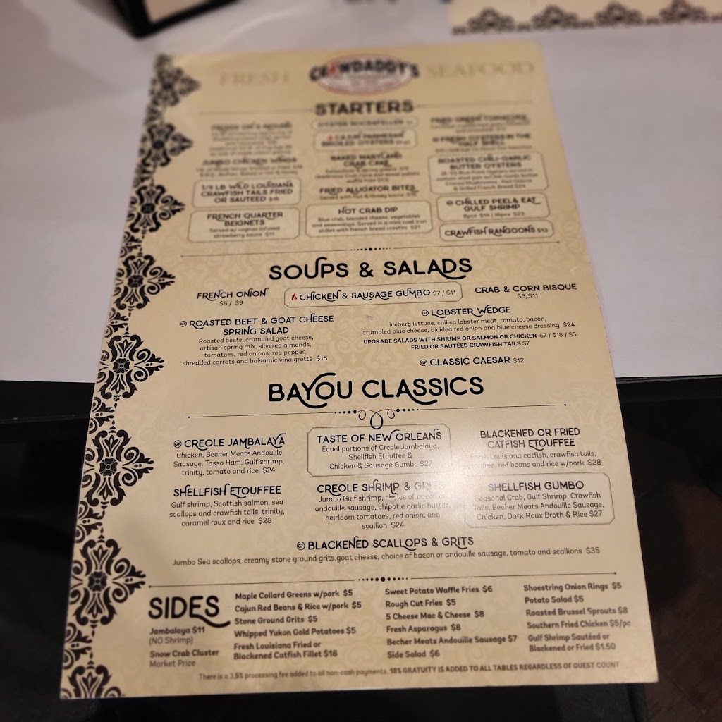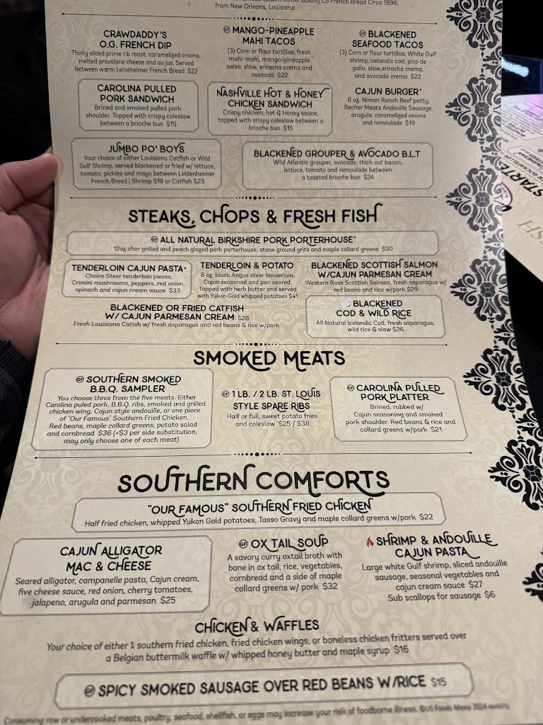 I’m Creole and I know I can be very hard on restaurants that don’t hold up. I’ll say the flavors weren’t bad. My fried crawfish tails were overcooked and too hard. There was no meat to chew on. And for $15 there should be more and the meat should be tender. I’ve had fried crawfish tails at an establishment called Fishbones in Detroit and it was fantastic, meaty and a great Cajun coating. And they gave three times as much and it was cheaper. The rest of the food was decent. My fried catfish was pretty good, and my Cajun shrimp pasta (substituted sausage with scallops) was very very delicious. But fur $30+ there should be more than 2 pieces of shrimp and 2 scallops. This dish costs way too much for it to be mostly noodles, mushrooms and peppers. You all need to do better about the quantity to price ratio. There should be triple the amount of shrimp and scallops in that dish. Very disappointed. I appreciate the effort but you got to do better with what you’re offering in relation to your prices.