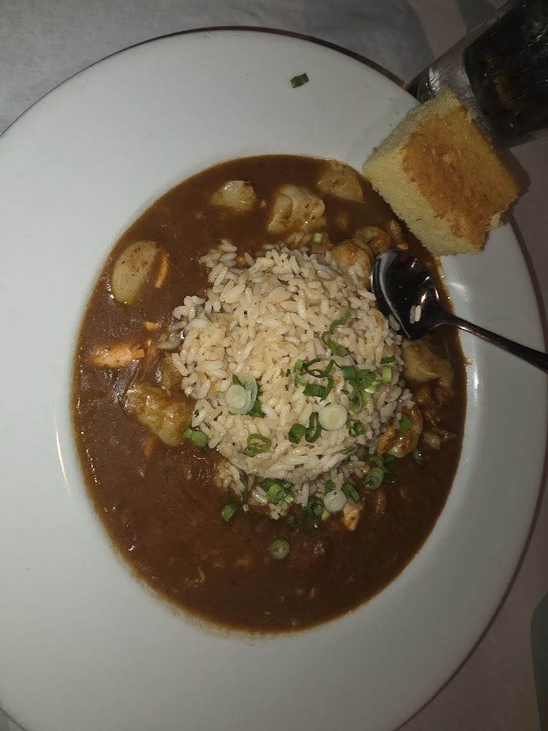 Live music was adative. Too many places have live music so loud you go deaf. This was supplementary and really provided atmosphere. Three of us had dinner. One kids grilled cheese with alphabet tots, one Cajun sampler (jambalaya, gumbo, seafood entefou), one Nashville Hot chicken sandwich. All were excellent. Abita is hard to find outside Louisiana. We will definitely be back.