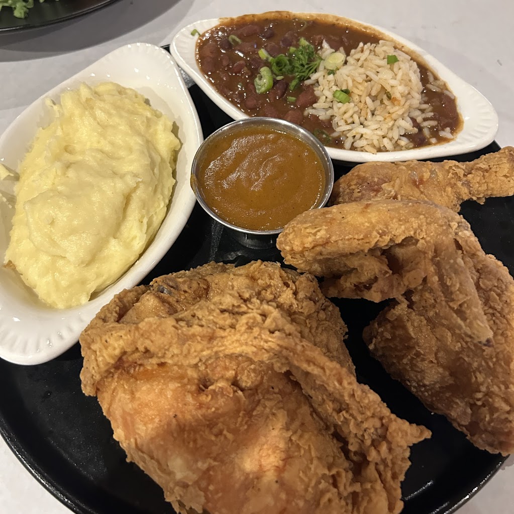 Food was terrible OMG. The fried chicken was huge. Beans & rice came out cold. Mac n cheese was terrible. The cheese wasn’t melted. Service took awhile. Fried green tomatoes terrible. The sauce that came with them…terrible. They don’t take items off your bill if you don’t like it even if you just tasted it. I would NOT recommend this establishment. Everybody I was with left with an upset stomach.