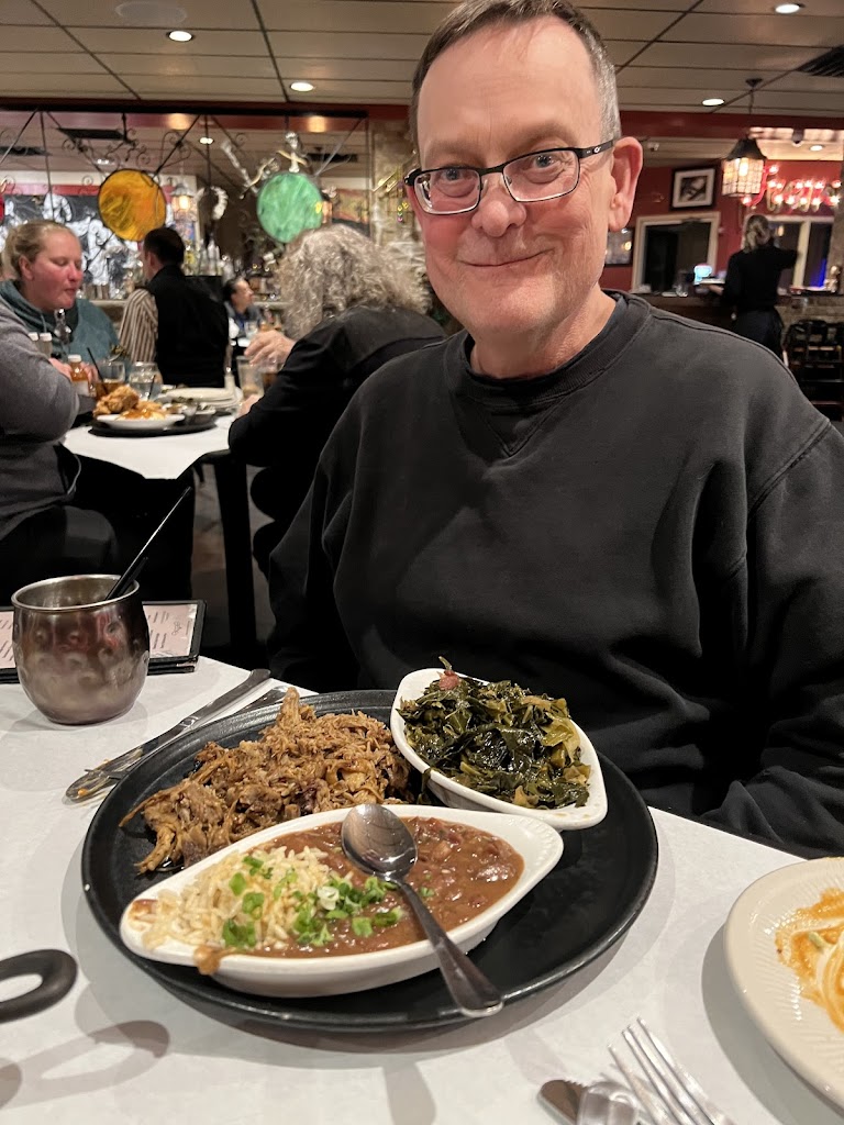 Always great food and service. Awesome crab ragoons and crab dip to start with hurricanes and sidecars for cocktails. The pork was Amazing! A vinegar flavor that was great! Shrimp n grits n bacon always spot on and delicious. All I can eat chicken on Mondays is very popular.