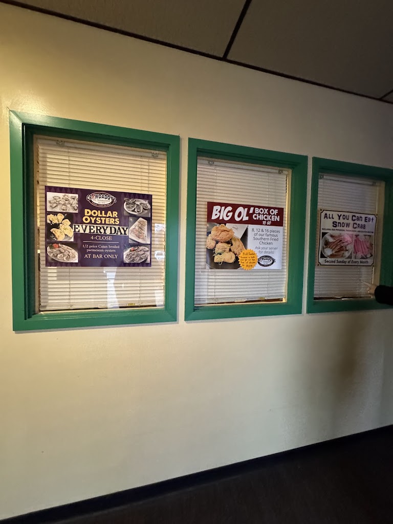 Best delicious cajun southern food around. Great music, wonderful and friendly customer service. Large indoor and smaall outdoor patio seating. Large selection of cocktails. Plenty of parking. Street parking and east lot parking available.