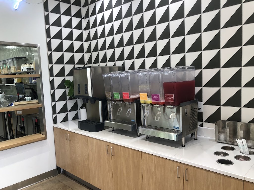 They were out of the pineapple ginger drink. I asked the cashier if they could refill it. She didn’t have a clue. I went up later to ask about it and asked for the manager, but they were too busy. The cashier came out when we are finished with our meal and said they couldn’t refill it. We tasted the other others, they tasted like mildly flavored water. At four dollars a pop I would expect a little more. we had a wrap, they were just OK. I’ve had much better.