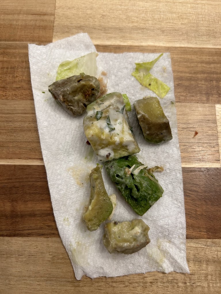 I ate about 20% by picking through it and the rest went in the trash. What the hell?!