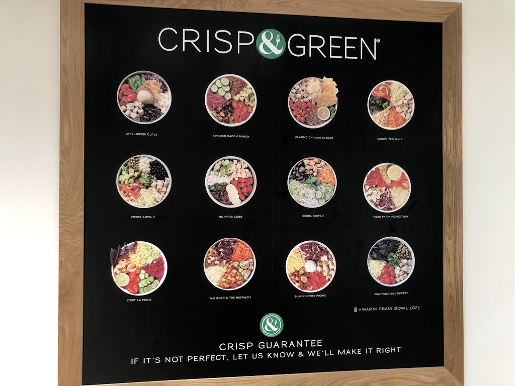I honestly like crisp and green but the last 2 times they messed up the order. They forgot the 2 best ingredients in my salad- goat cheese and craisins, and my green smoothie they forgot the pineapple blech! Their salads and smoothies are too expensive to not have the correct ingredients in them.