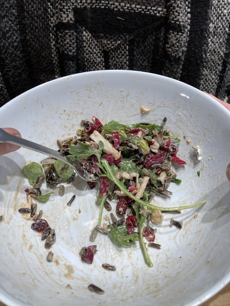 I got the Cobb salad. It was good but I was disappointed when I got home and there was no bacon. I liked the kale and spinach. I also go the date night smoothie. I liked that it wasn't too sweet, but it tasted like they used a very unripe banana, which overpowered the rest of the ingredients.