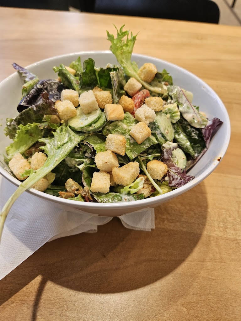 I ordered a Chicken Caesar salad. It wasn’t like any other Caesar salad I’ve had and it was basically falsified advertising. Besides that, it tasted awful - weird flavoring in the chicken and some kind of bizarre crunching burned thing on top. Strange ingredients for a Caesar Salad. Overpriced to boot. Recommendation is to avoid.