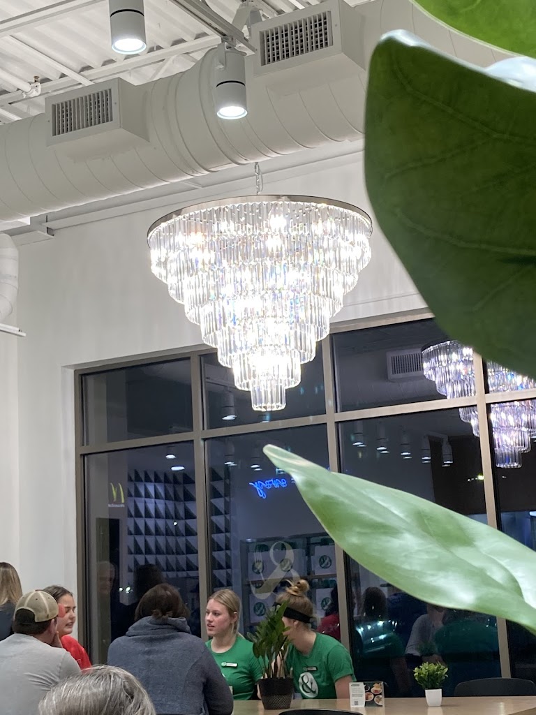 It gives off the (good) feeling of eating in the crisper drawer in the fridge because of the contrast between the vibrant green of the ingredients and the almost clinical white lighting, but the food was exceptionally good... and who knows, maybe that was an intentional atmospheric choice to boost the fresh-feelingness of the food?