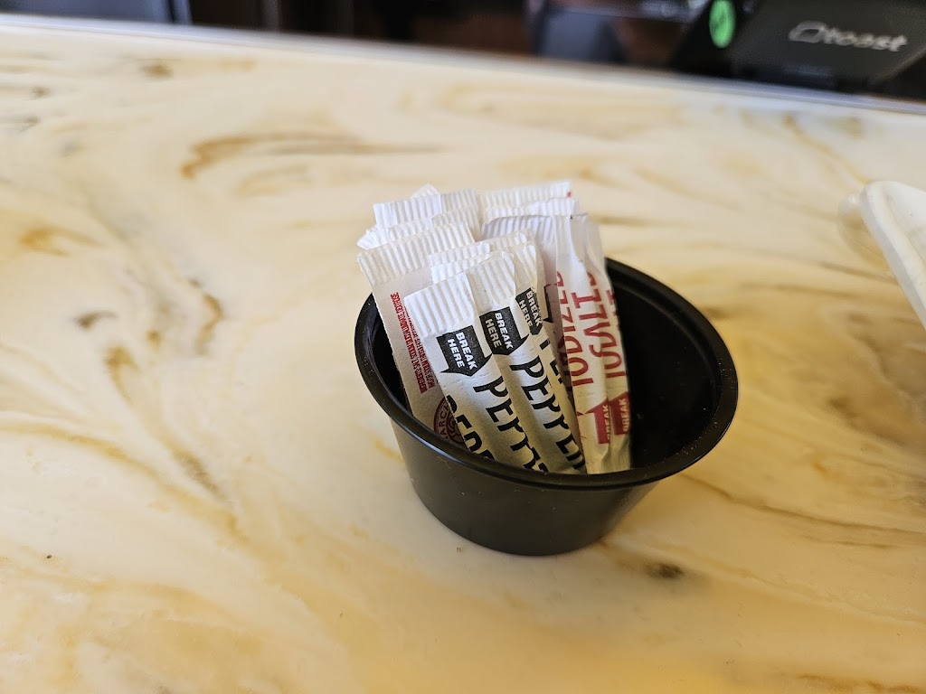 Can I get a salt & pepper shaker? I ordered the Cuban sandwich with a side of french fries and their Cuban chicken wings. The sandwich came out cold, and the extremely small portion of french fries was also cold. The chicken wings were incredibly small, severely overcooked & dried out like jerky. I asked my server for salt and pepper, and what she gave me was the little paper salt and pepper containers(picture shown). I asked her if I could get a salt and pepper shaker, and she said no. All in all, it was a very poor experience. I will not be back.
