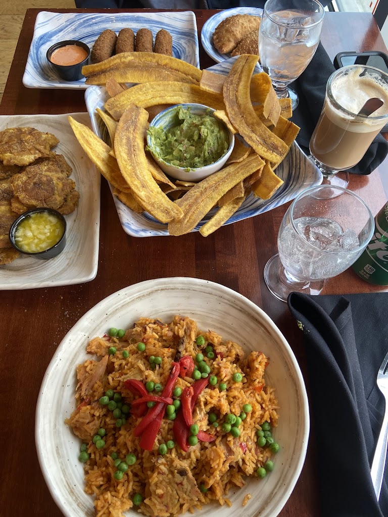 First time here w the family and dnt think i will return unles I want Guacamole w plantain chips that was good the sandwiches and the tenders w fries too but the garlic sauce they use for some dishes like the yuca is the most horrible sauce i have tried it literally made my food bad even my rice to the point i didn't even want it the pork was bland and dry the empanadas were bad the disc dough taste old n mildly sour serving portions are pretty small compared to other restaurants and price is up there like up there..... my bill was roughly $200 I had higher expectations w this spot since pictures look good n prices r not the most comfortable but it definitely was desieving..... what a disappointment 😔they definitely need a better cook!