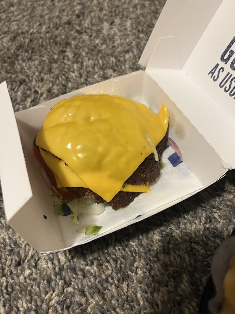 I ordered a burger with no cheese and this is what I get. It came with no buns. Can’t make this stuff up