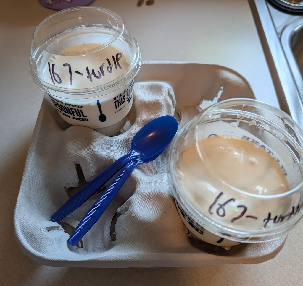 I ordered 2 scoop turtle sundaes and received just plain melted vanilla ice cream😔.