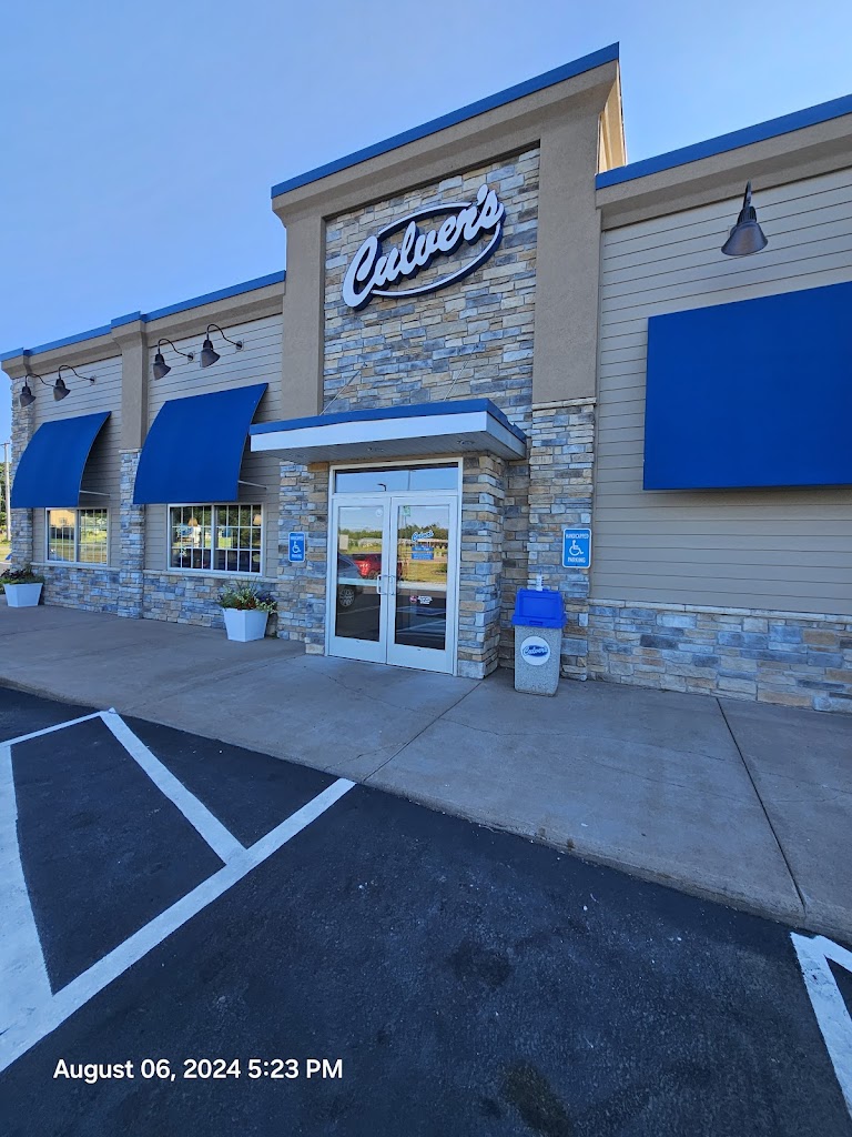 As always Culver's has a great food and great services no matter the location and that's what I love about it, it feels familiar and comfy .this one in particular has a great view of lake Superior/Michigan probable one of the best views of any I've been too you can see bayview from Ashland that's awesome 😎.