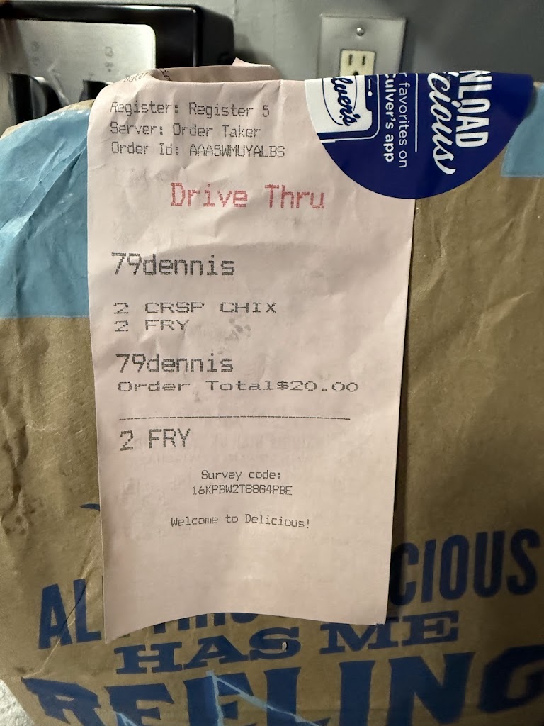 I called culvers on Costco Way immediately upon going back inside and taking a moment to ask myself how important a 4$ soda is,. Regardless, I wanted to make mention that an employee dropped the ball and either misheard what was asked of them or misinformed the UberEats driver intentionally to save time. I spoke with someone of managerial status and explained the case, they immediately declined Any responsibility stating the drink wouldnt have been in the bag in any instance, which didn't show respect to the driver doing their job by leaving the blame to them and felt like a total copout to me. She explained if I wanted to Drive to the store [the one I ordered from, being disabled...] theyd give me the soda no charge. I explained it wasn't about the soda, and that I just wanted to inform her of the error her store had made. She said she appreciated being told about the matter and have a good day. I said the same, she threw back a slanted "yeah sure".