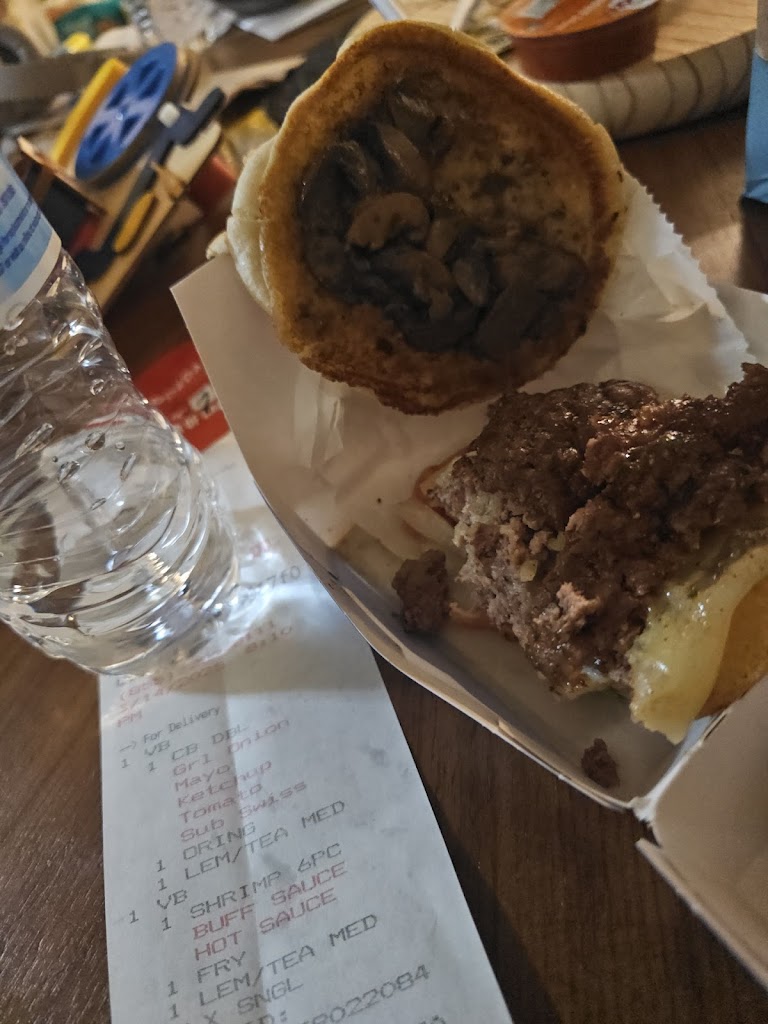 When I got home, the burgers had no bacon on them and everyone was kinda ticked off.