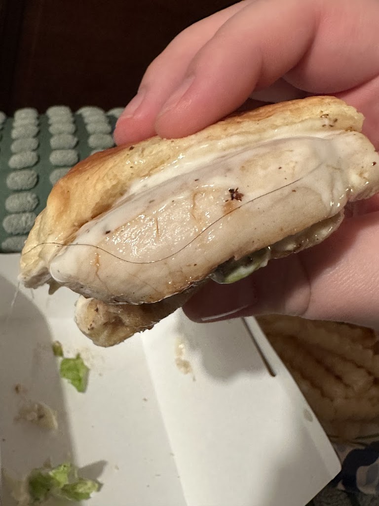 I ordered a grilled chicken sandwich plain with nothing on the sandwich, I received a grilled chicken sandwich with everything on it. Not what i ordered. To top it off it looked like a 5 year old made it, it was a complete mess, nearly impossible to eat. This store also is on the dirty side, not very clean. The table i sat at looks like it wasn't vacuumed under for a very long time and the windows were very dirty where i sat.