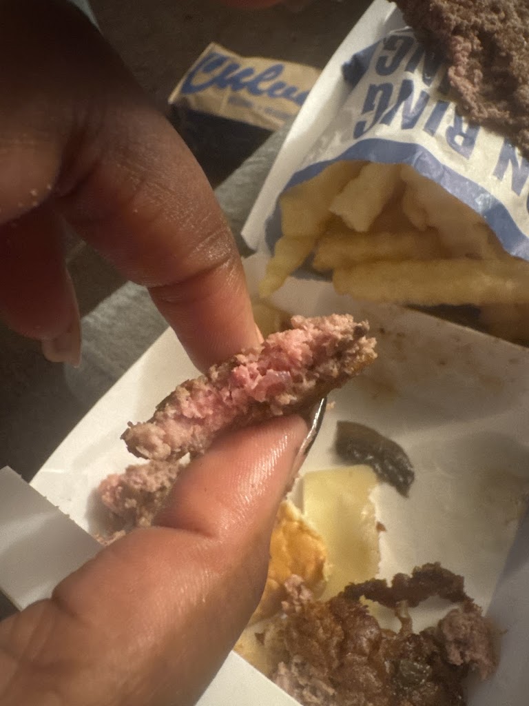 BURGER WAS SLOPPY, LUKEWARM, COLD CHEESE, FRIES WERE OK. BLACK THINGS ON BOTTOM OF THE BUN. I GOT A REFUND. NEVER EATING THERE AGAIN.!