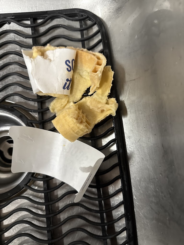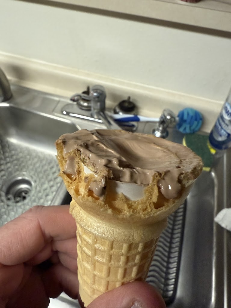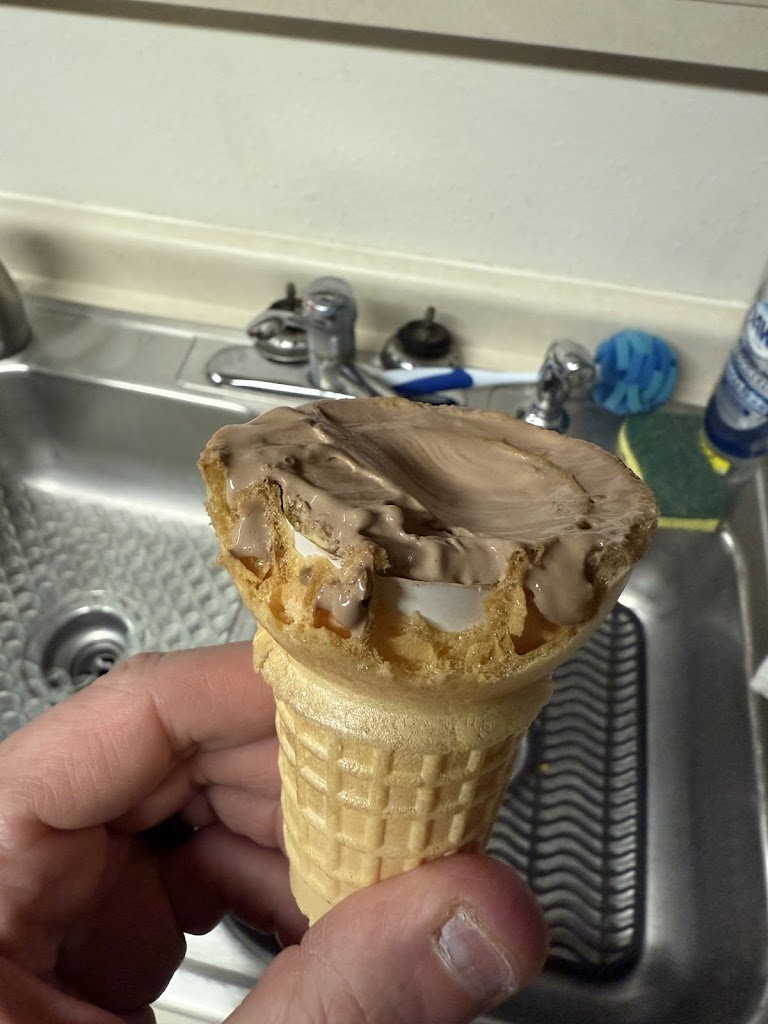Somehow there was a cone inside another cone and the top was not on it so when I was eating the ice cream I saw the paper around the other cone inside