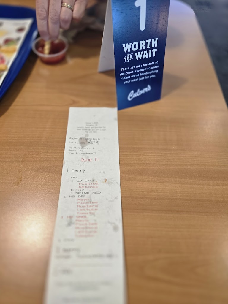 Unfortunately, we cannot recommend this Culver’s location to anyone. What was meant to be a casual meal on the way back from Madison turned into a frustrating and disappointing experience. If possible, we would give this visit zero stars.