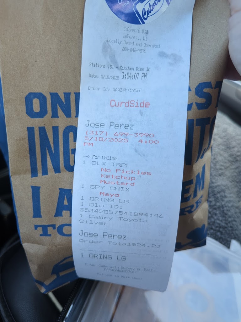 Love our local Culvers! Never had an issue, yummy custard and tuna baskets!