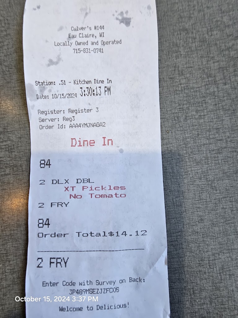 As always... love Culvers! If I could change one thing it would be that they offer fish sticks on the kids menu.