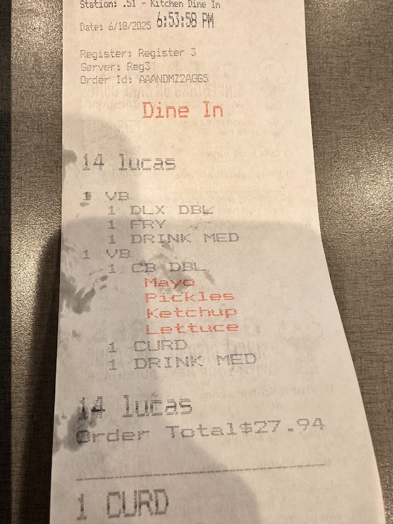 Only issue was they added onions and tomato when it was only ketchup, lettuce, pickle and mayo.