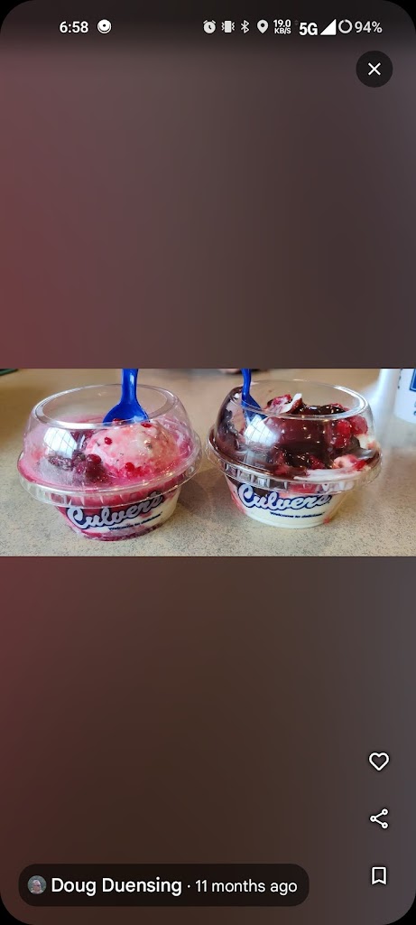 I love Culver’s! I had a great meal! Food was hot, fresh and eye pleasing! Cheese curds were so good! Did not leave without dessert too!