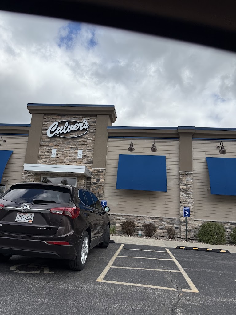 Convenient to the highway, quick on and off if you're traveling. Good place, the staff are friendly and courteous and the food is what you'd expect from Culver's (very good).