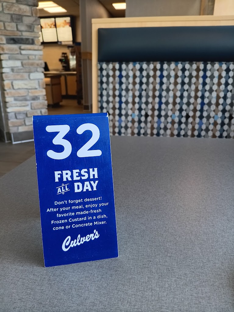Hey, I don't know if y'all just aren't cleaning your machine well/aren't giving it a couple rinses before making your custard, have someone struggling with staying accurate to the custard recipe, or if your method is just off, but this Culver's in particular almost always leaves this icky film on your mouth and just tastes a bit off. Just, idk, your night staff should know that being thorough matters, no half or quarter cheeking it. I don't care if you need to give the night team a raise, have to have a supervisor extra for close, or what, but the quality here is leaving a bit too much to be desired so I'm afraid I'll be spending my money at other Culver's locations. Food's usually fine, service is endearing at worst, the atmosphere could absolutely use a touch up, be it brighter/whiter/warmer lighting, a whole mood adjustment, a new vibe for the whole space, or what. Idk, I think ditching the plain atmosphere that I'm sure might be part of the franchise agreement would be nice, maybe something more geared toward the disenfranchised groups in the low income housing nearby could be nice, DEFINITELY a new carpet if bothering to keep it. Even just a few touches of plant life would help, you've got exposures on the east, and north sides I think, so I'd suggest probably snake plants for their lower light needs but I think if there's a south exposure, it could host a few too, succulents are always cute and usually only need water once a week or so, while the average plants would probably do well with twice a week.