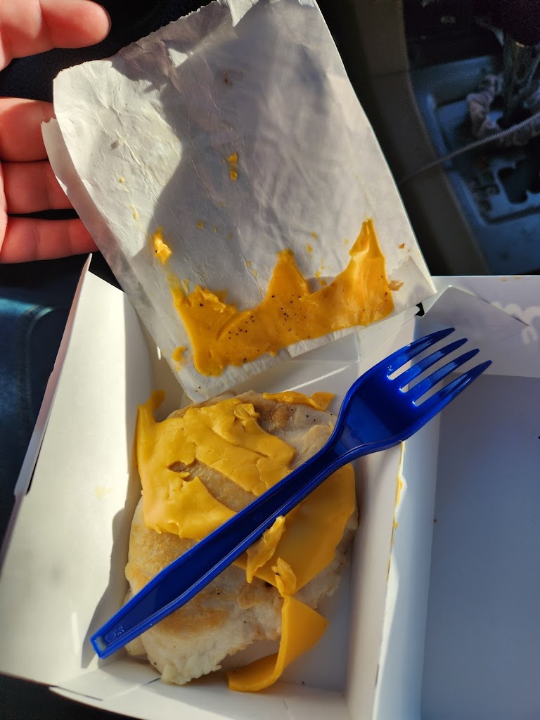 Perfectly done on both sides, in and out. Light golden brown on outside, and fluffy but not greasy on inside. Full potato flavor and served at perfect temperature for eating. One of my all time favorite places for stopovers when I'm on the road & travelling light.
