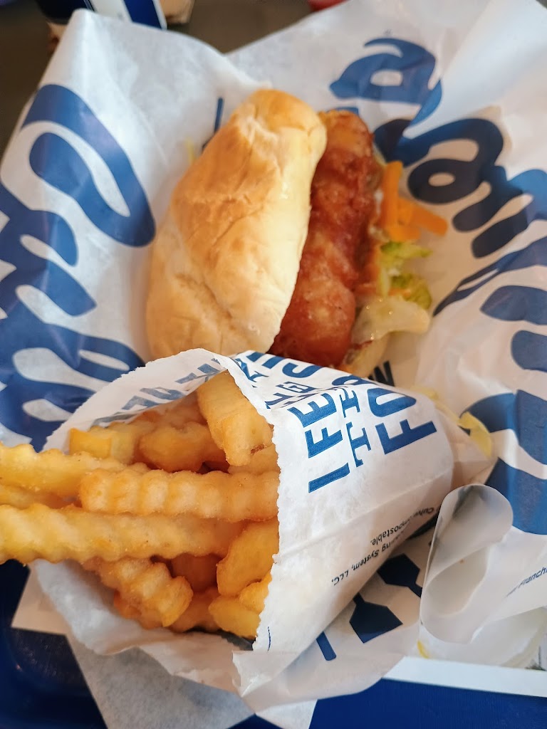 Best fish sandwich in the neighborhood. Good is hot. Fries are crispy. Ice tea is yummy. Service is prompt and with a smile. Restrooms are clean and supplied. Plenty of parking.