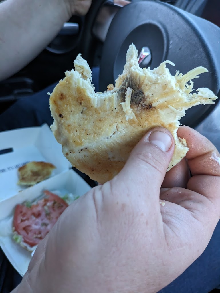 The grilled chicken sandwich was tough and almost a slimy exterior. The fries were still soft and soggy. The attached image is of the grilled chicken.