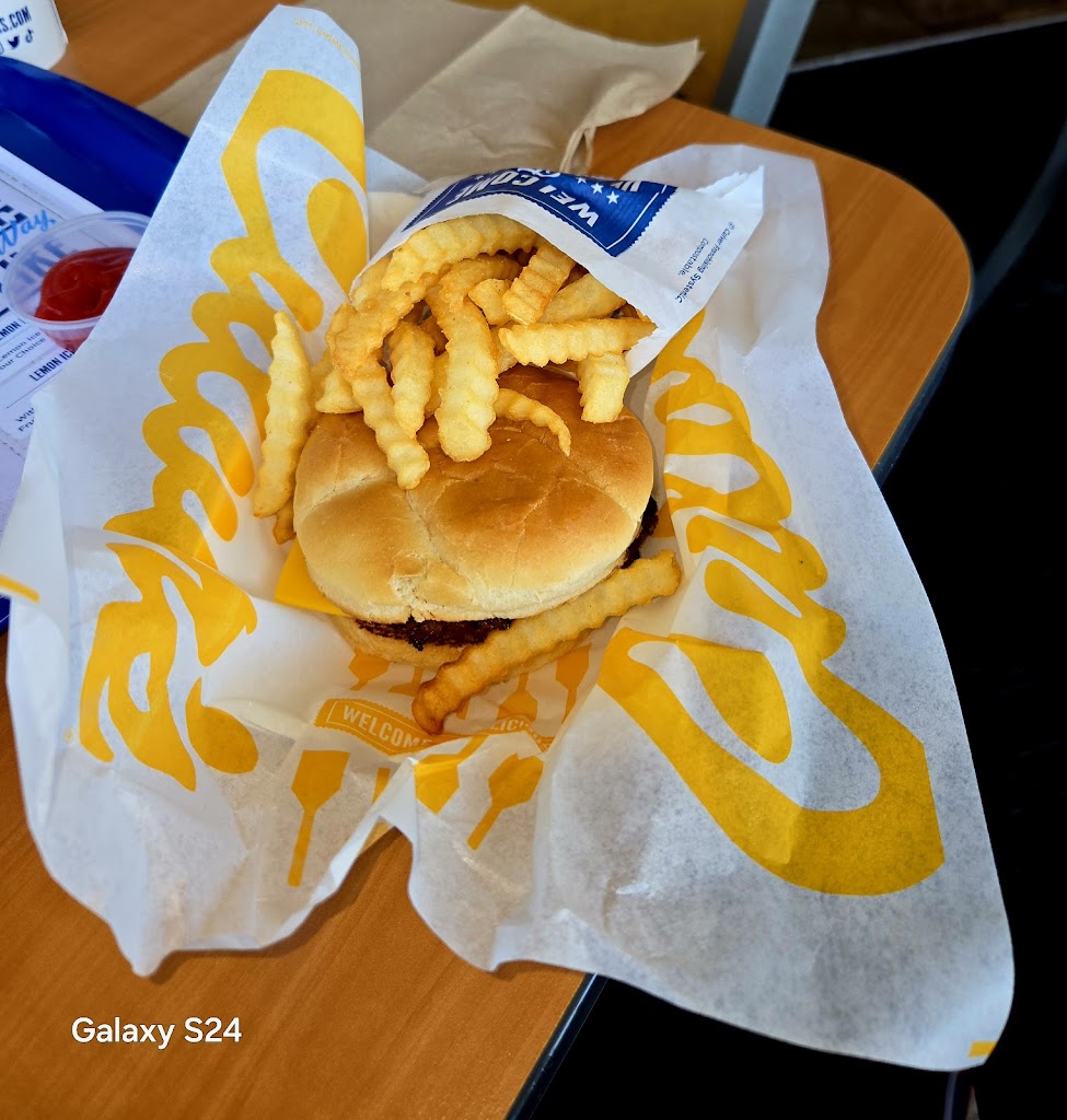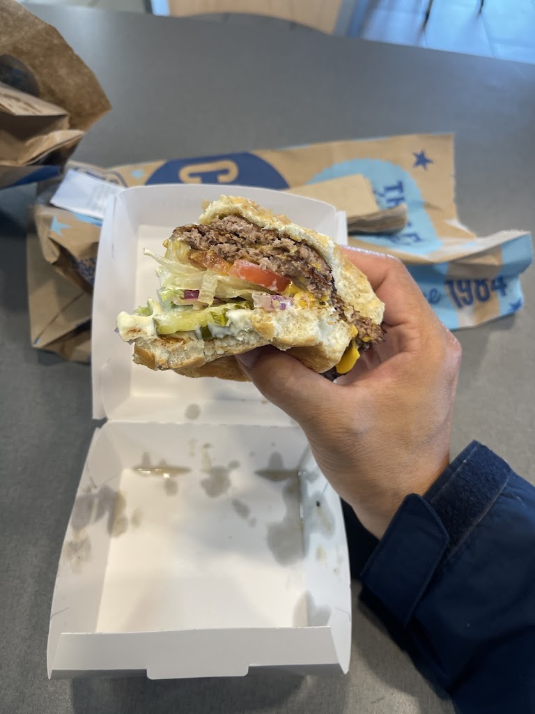 I had a burger with just fried onion and ketchup and it was fantastic as always. My friend enjoyed his crispy chicken sandwich, too. The staff was very nice to us!