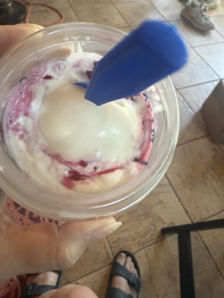 Then last night your employee spilled a concrete mixer, that I assume was under the heat lamp it was so melted, all over us and our car while handing it to us. Just for her to walk away without saying anything. We reach into the bag for napkins to start cleaning up, and lo and behold didn't even give us any.