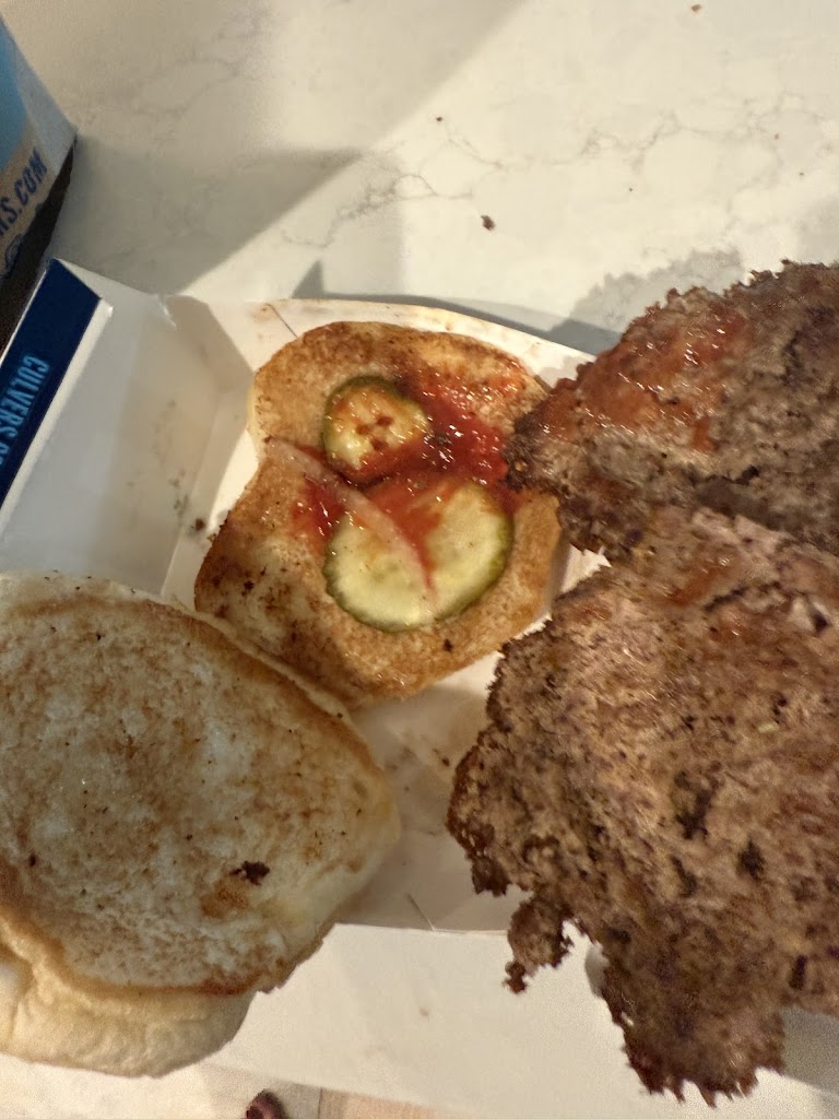 Okay, last time I tried to be understanding when I got home and they forgot the 3 ranch (that they ofc made sure to charge me for and told me were there) as well as my onion rings. We tried again today a month later. The. Burgers were terrible. Burnt and almost none of the toppings. Here’s my $8 double burger. A single grilled onion and pickles. I payed for multiple other toppings. It’s just disappointing since we usually like Culver’s, I am not sure what is going on either because they were not busy at all.